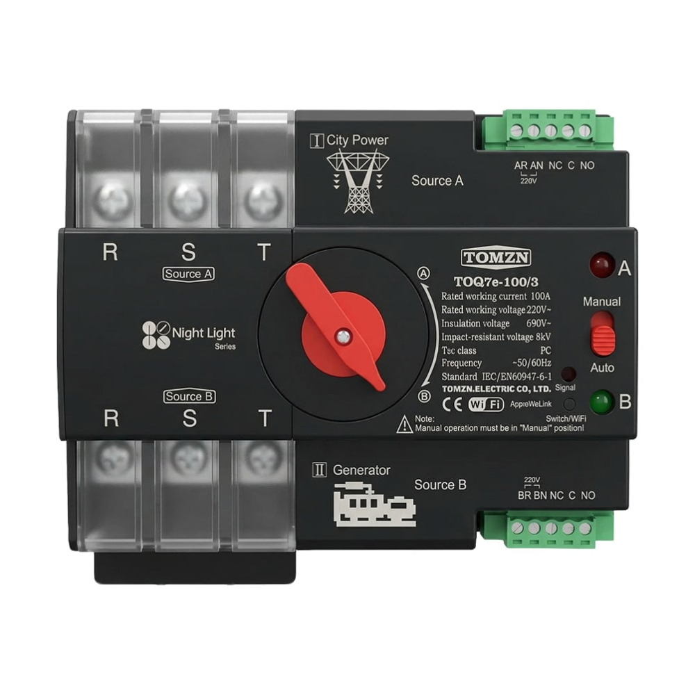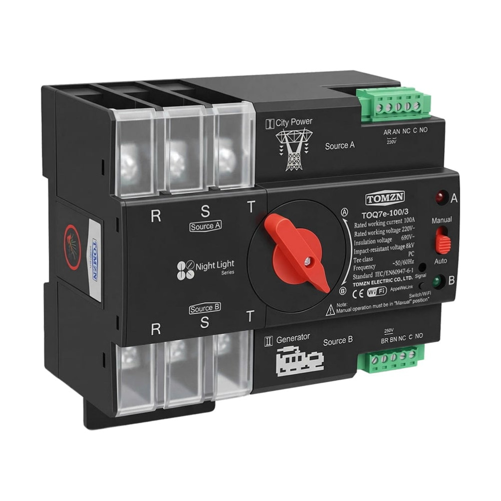 Автоматичний перемикач (АВР) під DIN-рейку з Wi-Fi TOMZN TOQ7e-100/3P 100A 3 полюси