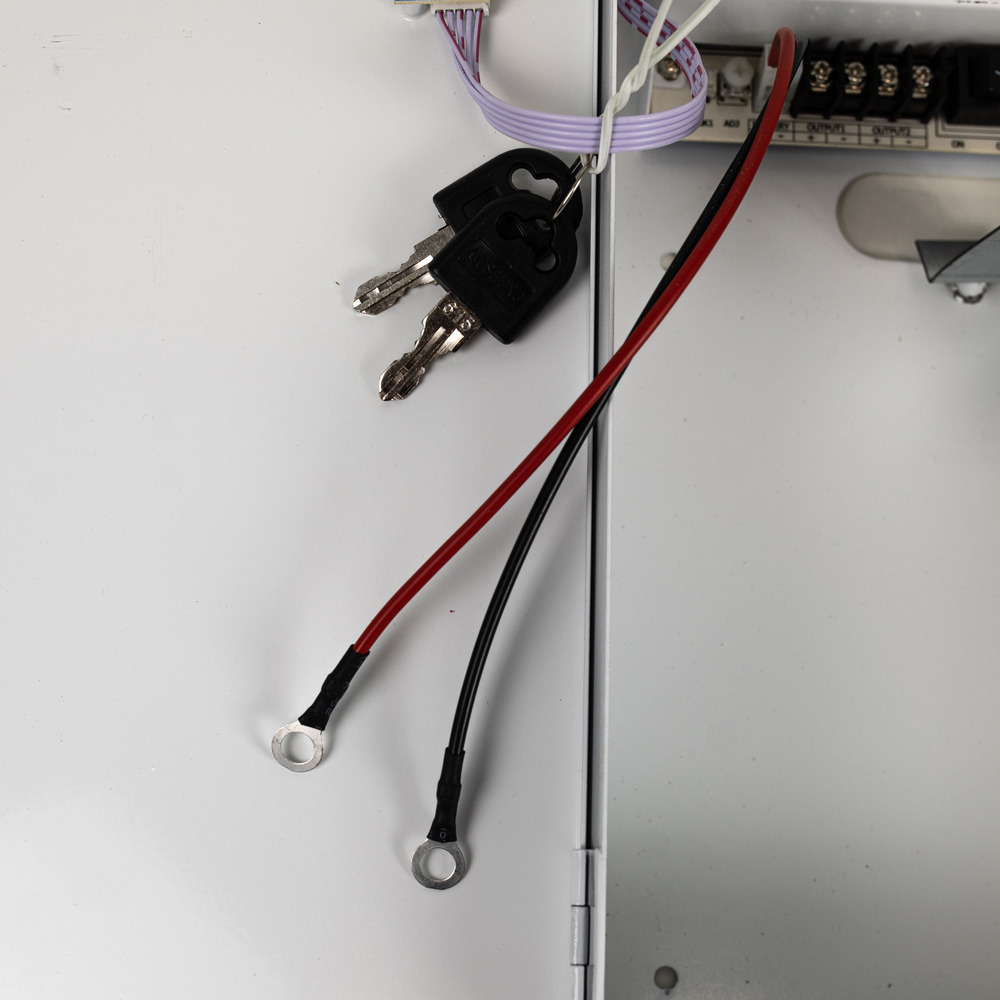 Стан обладнання: зламаний тримач акумулятора. Безперебійний блок живлення імпульсний, одноканальний. Живлення AC100-240V / 50-60Hz клемник, вихідна напруга DC12…14V / 5A, клемник. Відсік для акумулятора: 12В, 18Аг. Захист від перенапруги, КЗ, перевантаження по струму, а також захист заряду / розряду акумулятора. Корпус металевий з кришкою і замком. Розміри 300х195х80 мм