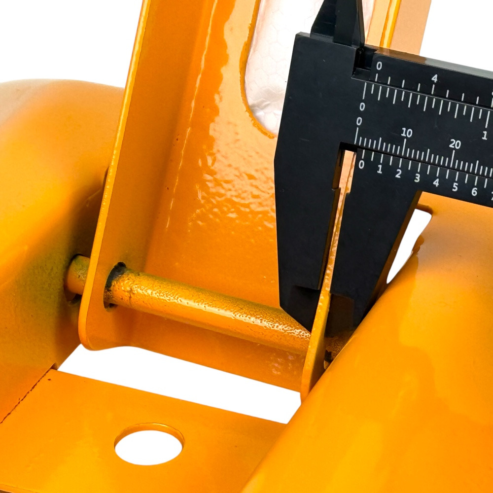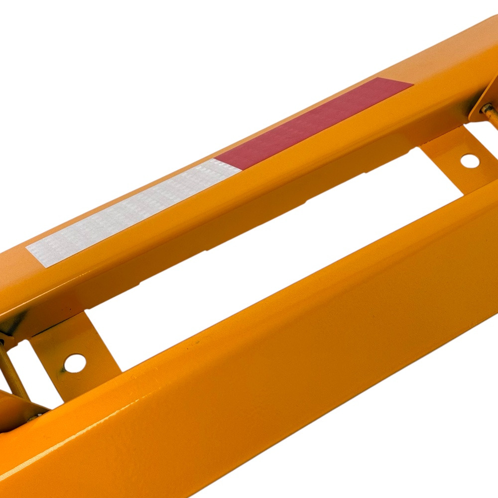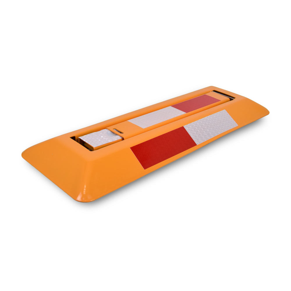 Міцний корпус зі сталевої пластини стійкий до зносу і впливу зовнішнього середовища завдяки захисному забарвленню в яскравий жовтий колір. Світловідбивні смуги на корпусі покращують видимість пристрою як у денний, так і в нічний час, що робить його помітним для водіїв і пішоходів. Встановлення здійснюється швидко і легко завдяки готовим монтажним отворам, що робить цей бар’єр придатним для будь-яких твердих поверхонь, як-от асфальт або бетон.