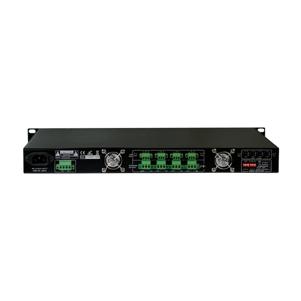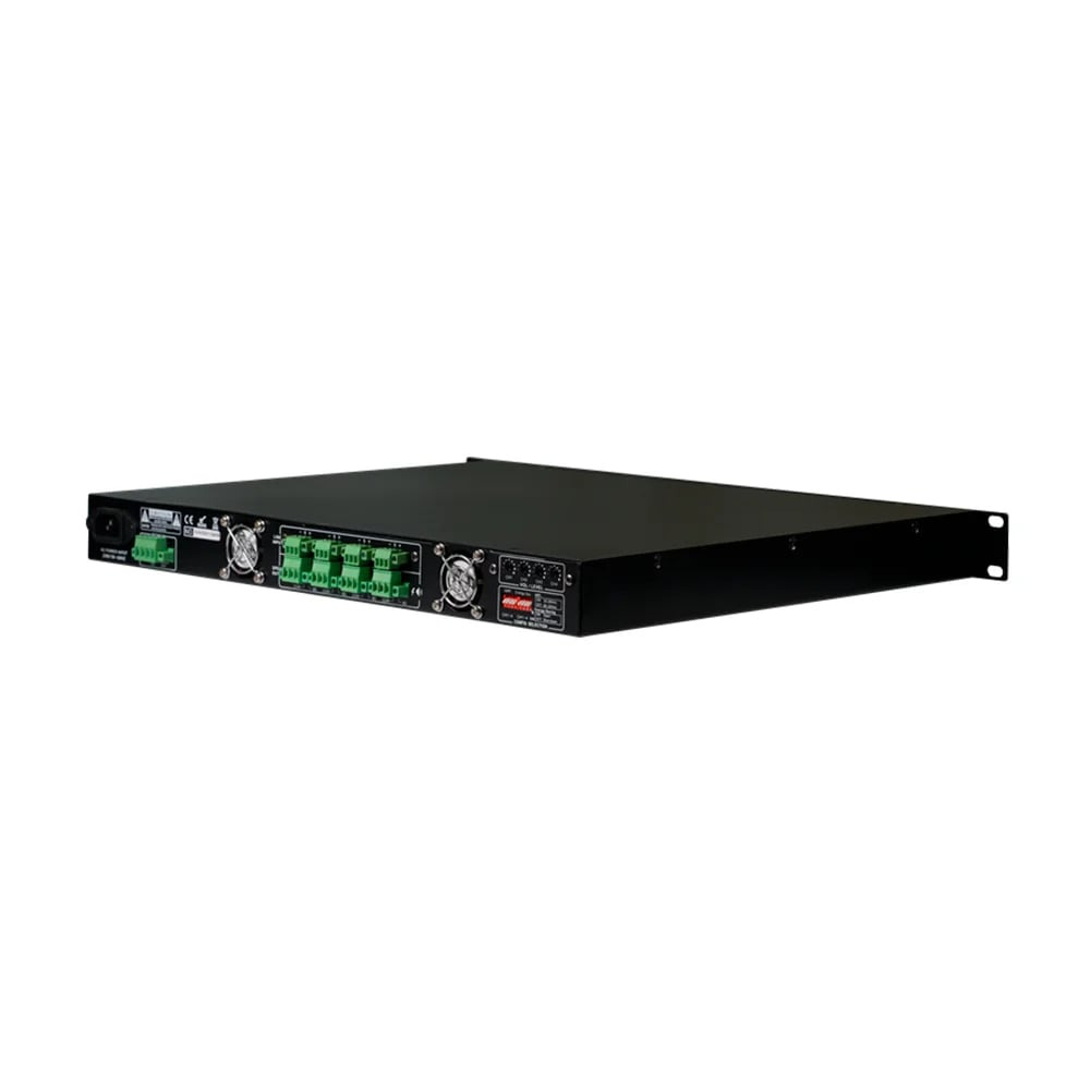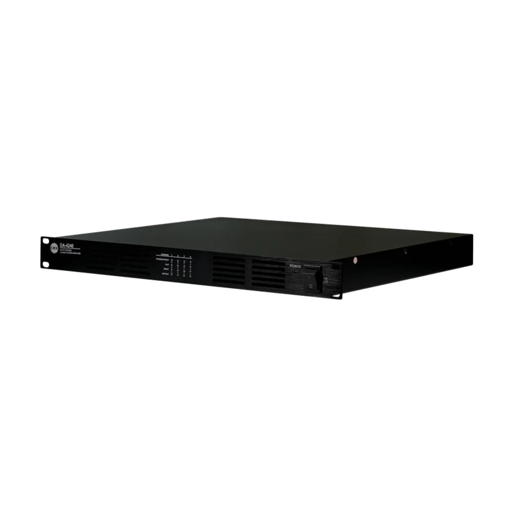 Чотириканальний підсилювач DA-4350 класу D, вихідна потужність RMS 4 x 350Вт, вихід 100В / 8 Ом, монтаж у стійку 19″, висота 1U, 484 / 420 / 44 мм, 9.5 кг