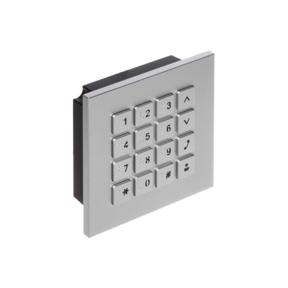 DHI-VTO4202F-MK – фірмовий модуль з клавіатурою, призначений для використання з панелями виклику. Ідеально сумісний із терміналом моделі VTO4202F-P. Встановлюється за необхідності використання цифрової клавіатури. Є, зокрема, кнопка виклику. На кожній клавіші з цифрами є шрифт Брайля. Для зручності є підсвічування. Механічна система натискання говорить про надійність пристрою. Фронтальна частина виконана з металу в сріблястому кольорі, збігаючись за дизайном з домофоном. Може працювати разом з іншими аксесуарами. Наприклад, зчитувачами або датчиками відбитків, камерами та індикаторами. Передбачено врізний та накладний монтаж.