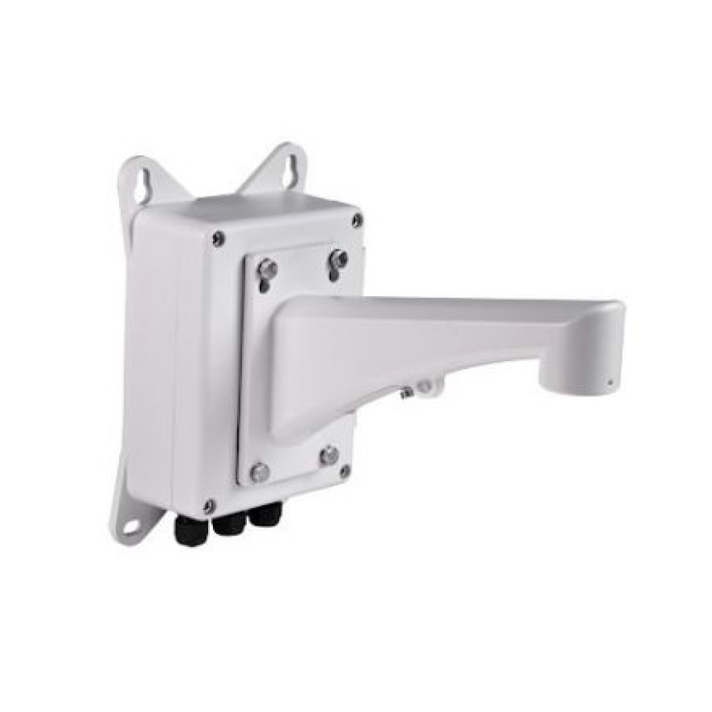 DS-1602ZJ-box – це алюмінієвий настінний кронштейн, призначений для встановлення професійних PTZ-відеокамер, що мають унікальну, панорамну конструкцію та відносно велику вагу. Комплект передбачає кутове кріплення з можливістю надійно зафіксувати камеру, а також комутаційний бокс, що безпосередньо монтується на стіну. За допомогою DS-1602ZJ-box можна не тільки зручно розташувати засіб спостереження, але й вивести всі додаткові аксесуари із проводами через захищену розподільчу коробку. Металеві кріплення утримують до 10 кг ваги. Кронштейн Hikvision сумісний з такими моделями, як DS-2DE5xxx, 2AE, 2AF, 2DF, багатьма їх похідними та іншими серіями, що мають ідентичний формат. Підходить для експлуатації у широкому спектрі умов.