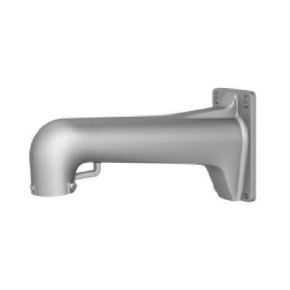 DS-1603ZJ-P – надійний алюмінієвий кронштейн, призначений для встановлення відеокамер формату PanoVu. Складається із суцільної конструкції, що включає настінне кріплення, ручку та точку фіксації. Всередині є канал для безпечного проведення кабелю. Панорамна камера міцно монтується за допомогою якісної фурнітури. Крім головного кріплення, є страховий гачок, що запобігає падінню обладнання. Сріблястий кронштейн розрахований на значне навантаження максимально до 20 кілограм. Стіна, стовп або інша опора повинні припускати стійкість, що відповідає вазі техніки та аксесуарів. DS-1603ZJ-P використовується для зручного та вигідного розміщення відеообладнання, щоб охопити максимальну область моніторингу.