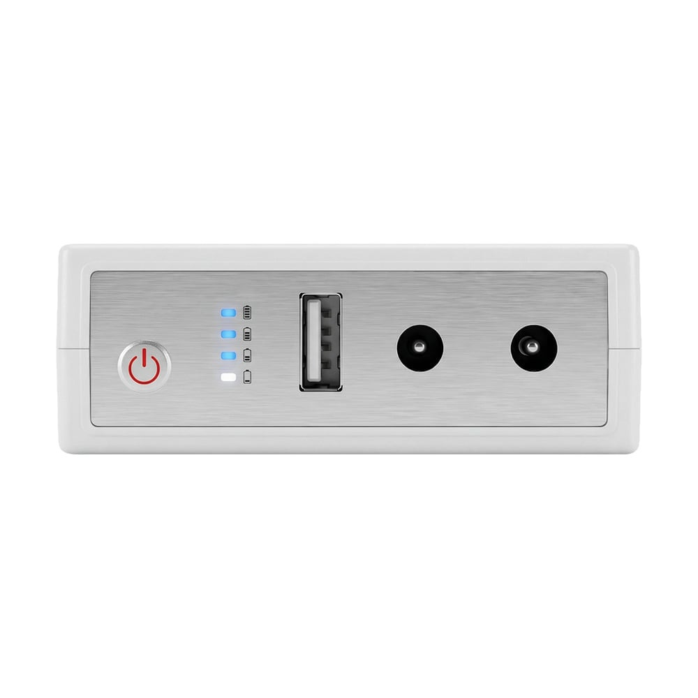 Комплект з мініДБЖ для роутера/ONU-термінала та блоку живлення. Джерело безперебійного живлення з 4 вбудованими акумуляторними батареями Li-ion ємністю 4000 мА·год (загальна ємність 16000 мА·год); максимальна загальна вихідна потужність 25 Вт; вихідні інтерфейси USB, DC *2, вихідна напруга 5 В + 12 В + 12 В; вихідна напруга/струм та максимальна потужність кожного виходу: USB: 5В/1.5А, DC1: 12В/1А, DC2: 12В/1А; вхідна напруга DC 12В/2А; роз’єм DC вхідний 5.5 / 2.1 мм, роз’єм DC вихідний 5.5 / 2.5 мм; розміри 132 / 79 / 28.5 мм, вага 379 г; у комплекті 2 кабелі DC-DC 5*2.5 довжиною 51 см кожен і роз’єм DC. Імпульсний блок живлення; номінальна вихідна напруга 12 В, вихідний струм 2 А, вихідна потужність 24 Вт; вхідна напруга 100-240 В; корпус ABS-пластик; роз’єм DC 5.5 / 2.5 мм; довжина шнура 90 см