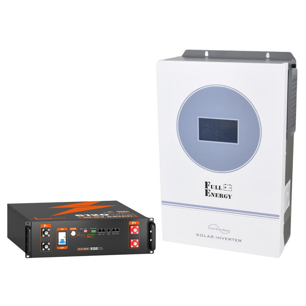 Автономна система безперебійного живлення потужністю 6.2 кВт з LiFePO4 АКБ включає: Гібридний інвертор Full Energy BBGI-6248MPW(TS) однофазний, чиста синусоїда, номінальна потужність 6.2 кВт, пікова потужність 12.4 кВт, 1 MPPT, потужність сонячних панелей 8.5 кВт – 1 шт. Акумуляторний блок LiFePO4 (літій залізо фосфатний) HS48V100AH10: номінальна енергія 5.12 кВт·год, ємність 100 А·год, номінальна напруга 51.2 В, вбудована BMS – 1 шт.