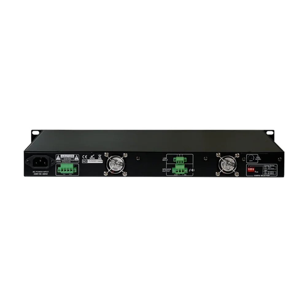 Одноканальний підсилювач класу D; вихідна потужність 500 Вт, вихід 100 В/ 8 Ом, монтаж у 19-дюймову стійку, висота 1U; AC 230 В / DC 24 В; 484 / 420 / 44 мм; 5 кг