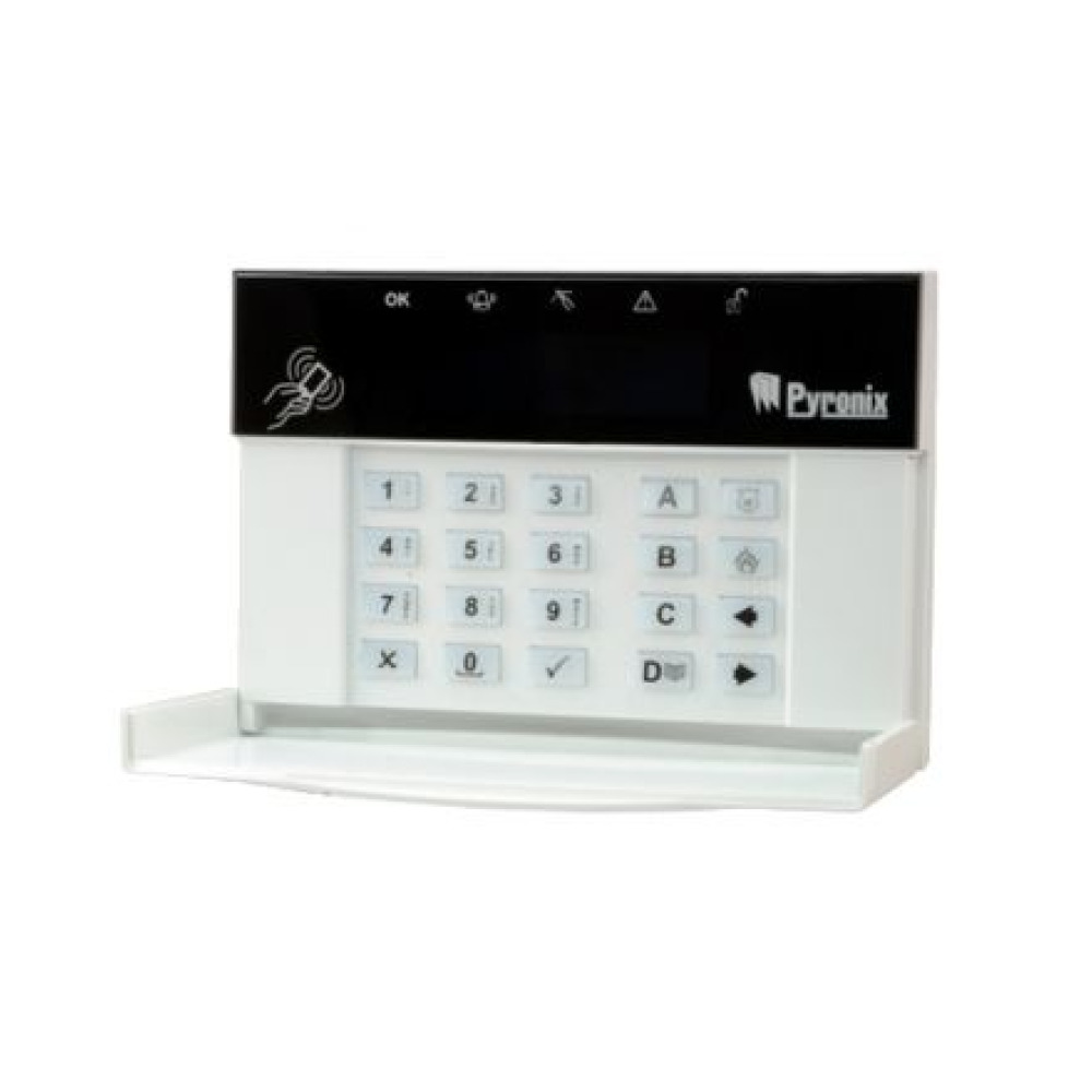LCD клавіатура з вбудованим зчитувачем для Enforcer32-WE і PCX. 2 входи, 1 вихід PGM; -10 …. + 40 °; розміри корпусу: 144 × 99×34мм.