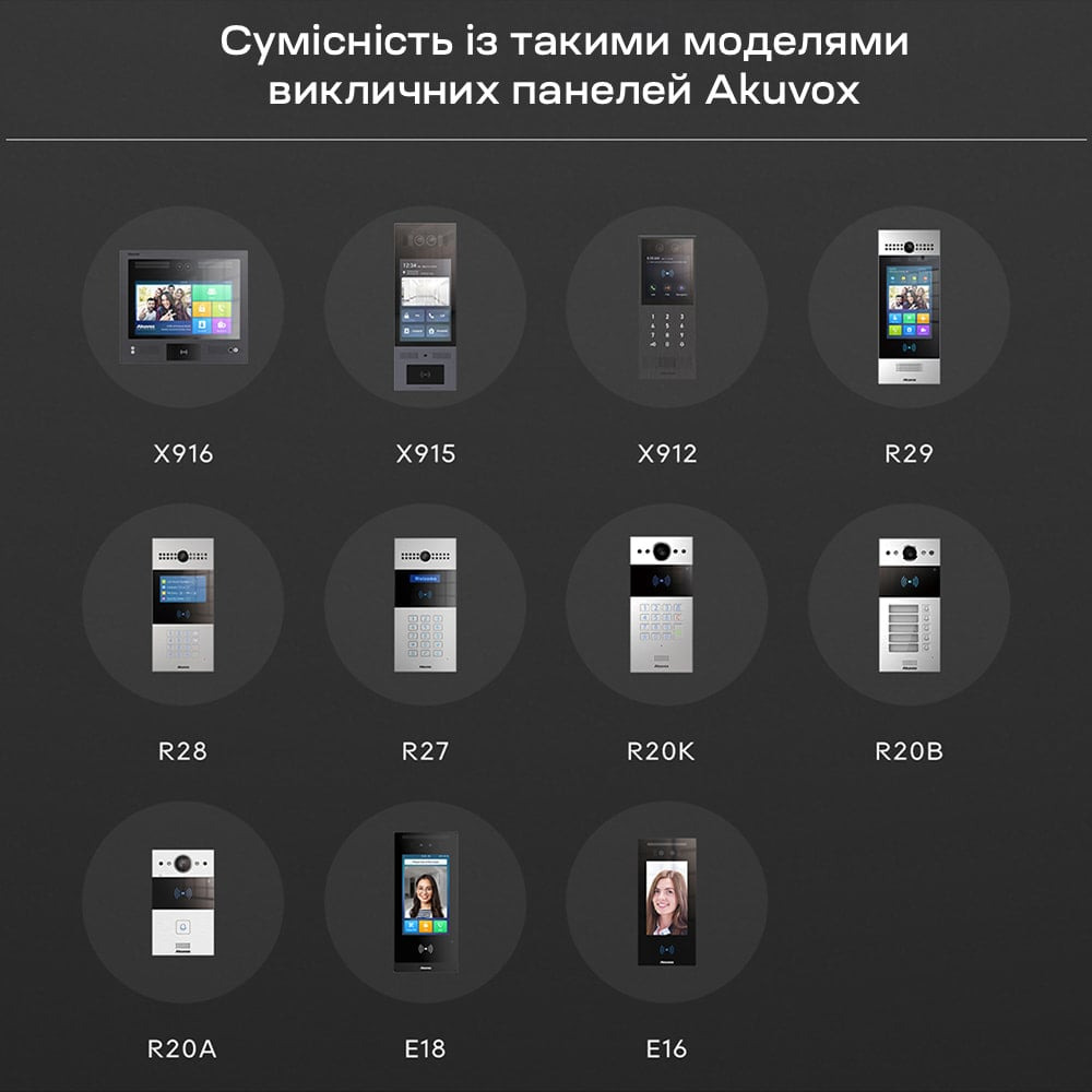 Реле безпеки для блокування дверного замка у випадку демонтажу чи пошкодження палелі виклику; сумісність: відеопанелі Akuvox X916, X915, X912, R29, R28, R27, R20K, R20B, R20A, E18, E16; оснащений вихідним реле, входом, портом RS485, кнопкою для налаштування зв’язку з панеллю виклику та двома індикаторами; живлення 12 В/100 мА, живиться безпосередньо від панелі або окремого джерела живлення, з комунікацією через RS485; встановлення в стандартні монтажні коробки; робоча температура -20°C~+60°C; пластиковий корпус; розміри 31 / 56 / 24 мм