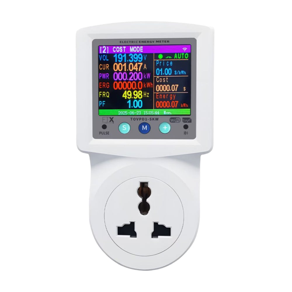 Розумна розетка з реле напруги, з підтримкою WiFi 2.4 ГГц, Bluetooth та керуванням через застосунок Tuya / Smart Life, кольоровим TFT-дисплеєм, енергомоніторингом (V, A, kW, kWh, Hz, PF); комплексний захист від перенапруги, низької напруги, перевантаження за струмом та потужністю (kW); максимальний струм навантаження 16 А; робоча напруга AC 140-300 В, 50/60 Гц; регульована затримка відновлення живлення (1-500 с); функція автоматичного повторного ввімкнення; інтелектуальні режими таймерів (розклад, зворотний відлік, циклічний та імпульсний режим); функція автоматичного вимкнення у разі перевищення ліміту споживання; побудова сценаріїв «Розумний будинок» на основі показників енергоспоживання; голосове керування через Google Assistant / Amazon Alexa; можливість калібрування показників; власне споживання <2 Вт; вхід універсальний, вихід європейського стандарту (EU); корпус із вогнетривкого полікарбонату; розміри 135 / 74.5 / 77 мм