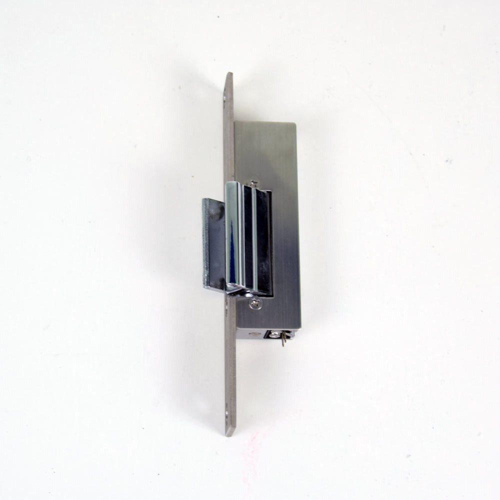 Стан обладнання: після ремонту, легкі подряпини. Врізна електромеханічна защіпка з короткою планкою для скляних дверей без рами. Сила утримання до 500 кг. З живленням замкнена. Живлення DC12 чи 24V. Споживання DC12V/200mA, DC24V/100mA. Розміри 160х25х31мм.