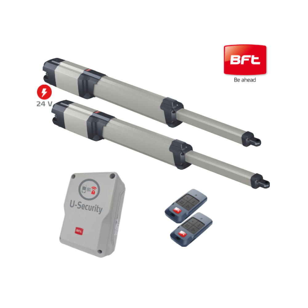 Комплект електромеханічної автоматики для розпашних воріт з телескопічними приводами 24V з магнітними кінцевими вимикачами, призначений для інтенсивного використання.