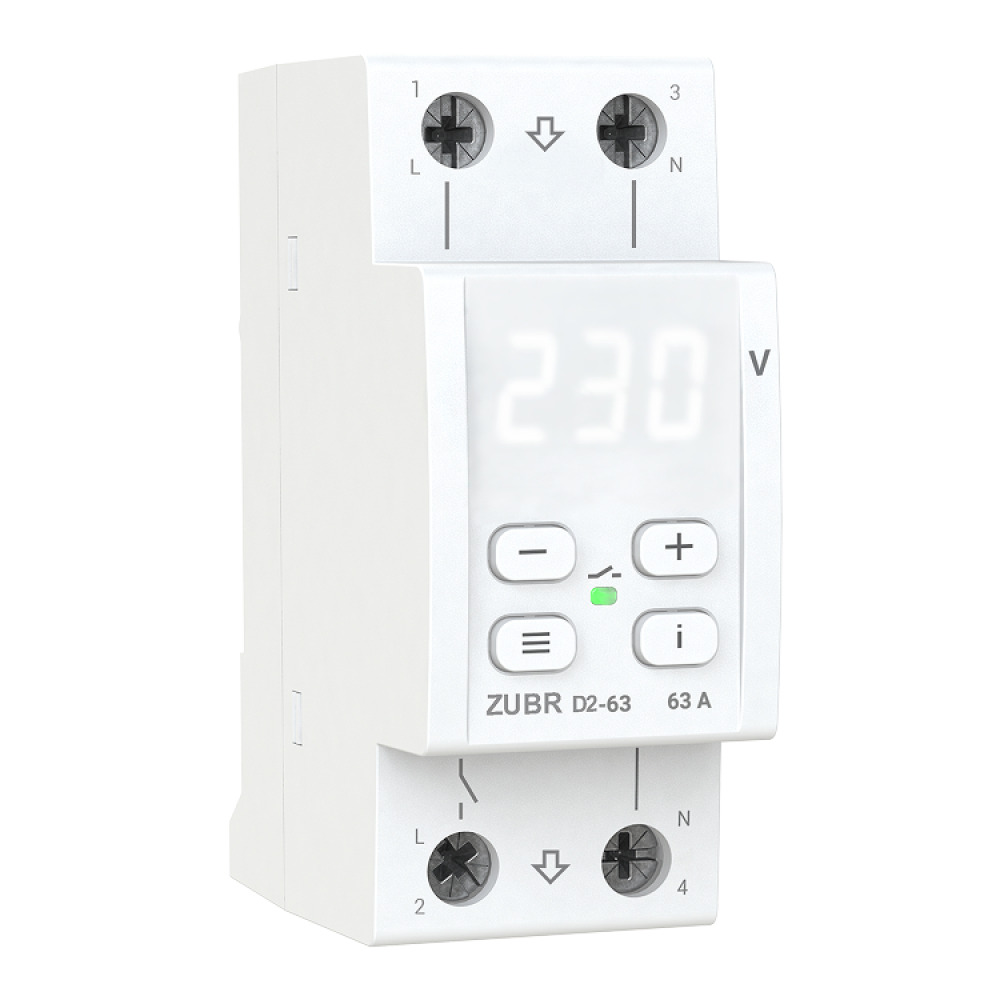 Реле напруги ZUBR D2 захищає від критичних стрибків високої та низької напруги, а також від обриву нуля. У випадку аварійної ситуації реле напруги відключає навантаження, а при нормалізації включає назад. Широкий функціонал реле напруги дозволяє оптимізувати кількість спрацьовувань завдяки індивідуальним налаштуванням під вашу мережу.