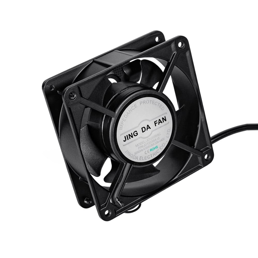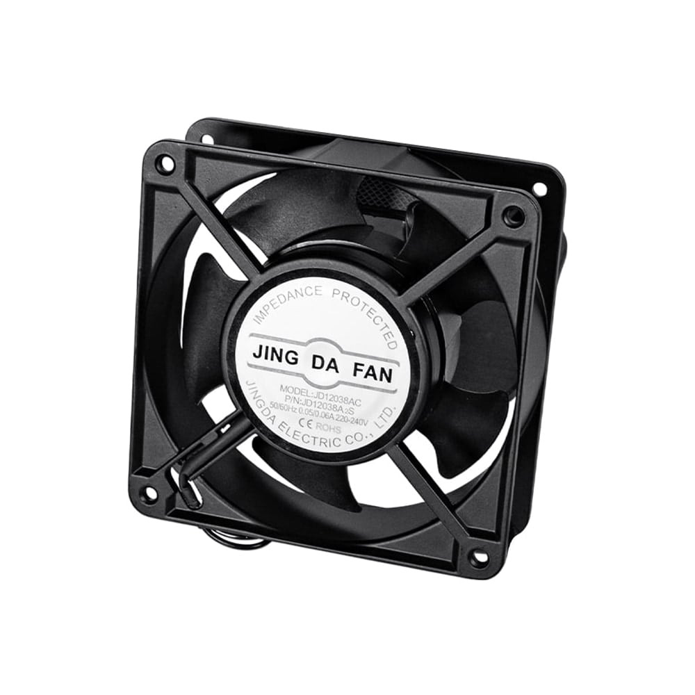Вентилятор до комутаційних шаф; вхідна напруга AC 220 В; робоча температура -10 °C ~ +60 °C; матеріал корпусу алюміній; розміри 120 / 120 / 38 мм; довжина кабелю 1.5 м
