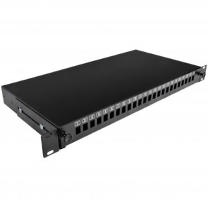 Патч-панель 24 порти SC-Simpl./LC-Dupl./E2000, пуста, кабельні вводи для 6xPG16 та 6xPG11, 1U, чорна