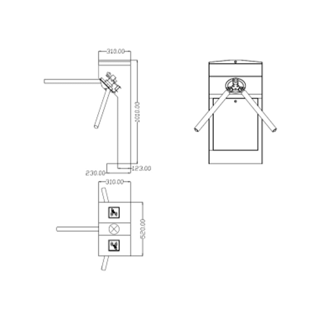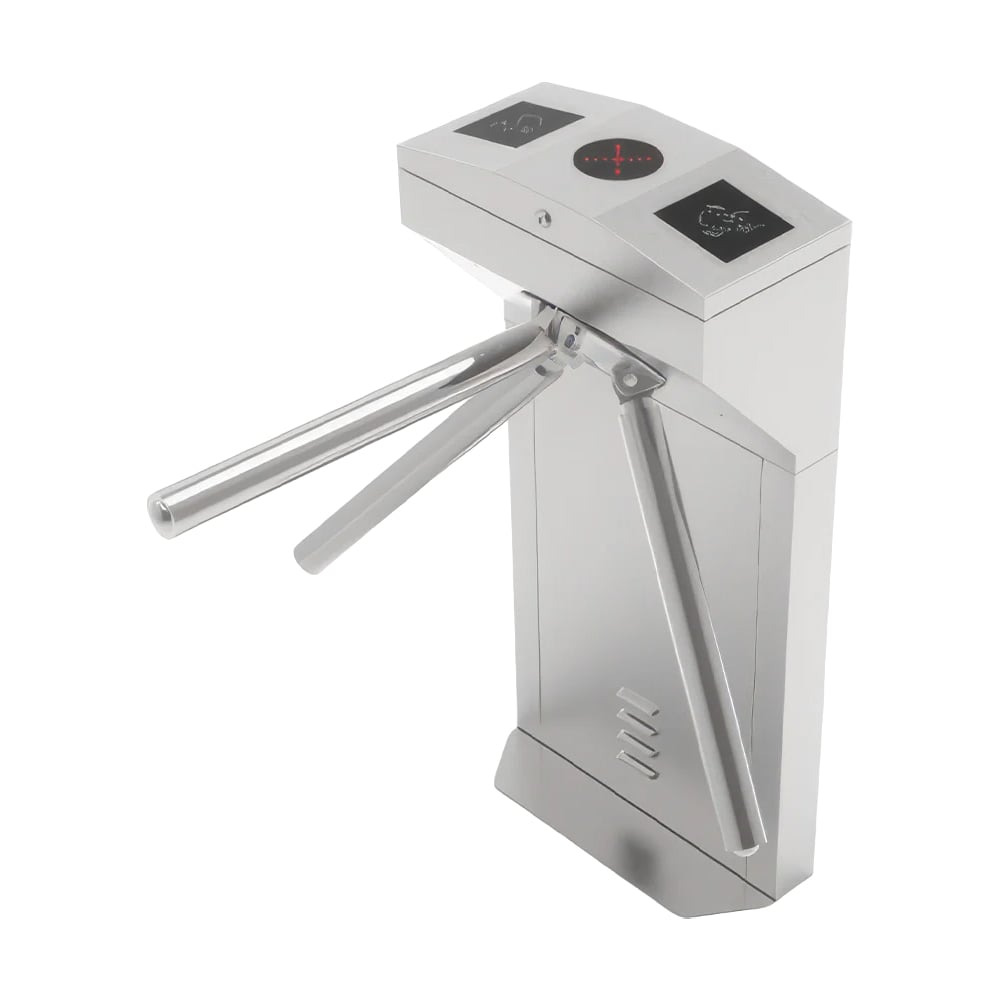 Напівавтоматичний турнікет-трипод; пропускна здатність: 35 чол/хв; ширина проходу: 550 мм; тип конструкції: рожковий; тип встановлення: підлогове; тип турнікета: напівзростовий; живлення: 100-240В; споживання: 24 Вт; час пропуску: 0.2 с; індикатор: світодіодний; встановлення: внутрішнє; матеріал: нержавіюча сталь; розміри: 520 / 310 / 1010 мм