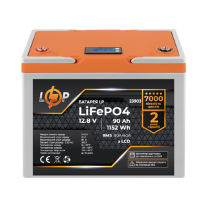 Акумулятор LP LiFePO4 12,8V – 90 Ah (1152Wh) (BMS 80A/40А) пластик LCD для ДБЖ
