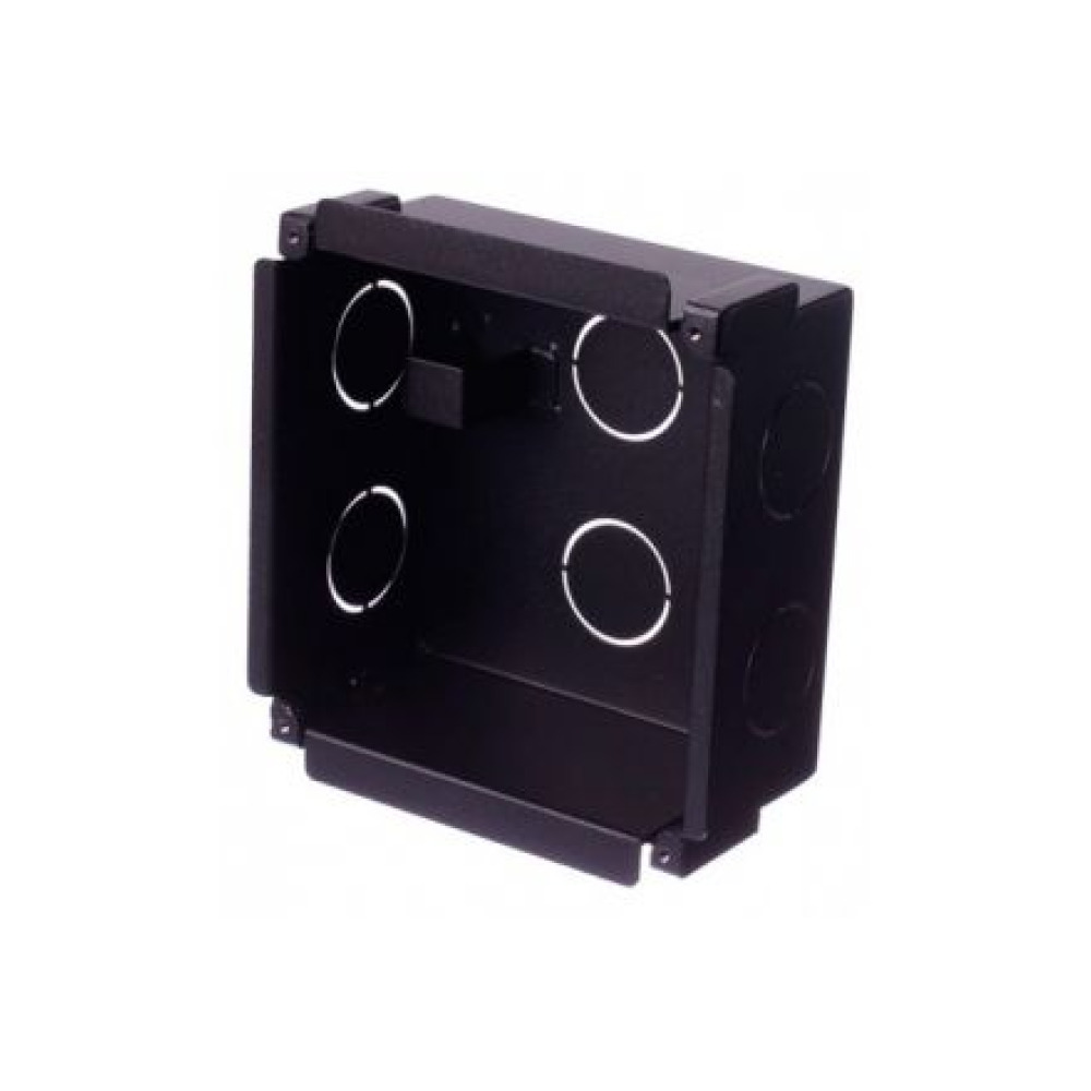 VTOB107 — спеціалізована металева коробка для врізання в стіну панелі DH-VTO2000A. За допомогою цієї компактної рамки термінал поміщається на необхідний рівень. Короб, разом із внутрішньою частиною обладнання, поміщається у пропорційний простір у стіні та надійно фіксується. Завдяки міцному корпусу, техніка перебуває у безпеці від впливів як зсередини, так і із зовнішнього боку. Фірмовий аксесуар Dahua ідеально збігається за розмірами та іншими параметрами з пристроєм. Всі кріплення повністю сумісні для найбільш зручного та простого монтажу. Передбачено створення отвору в одній із точок для виведення проводки. VTOB107 має вагу трохи більше 500 грамів. Каркас виконаний у чорному кольорі. Враховуючи конструкцію панелі, зовсім не помітний і прихований від оточуючих як технічна деталь.