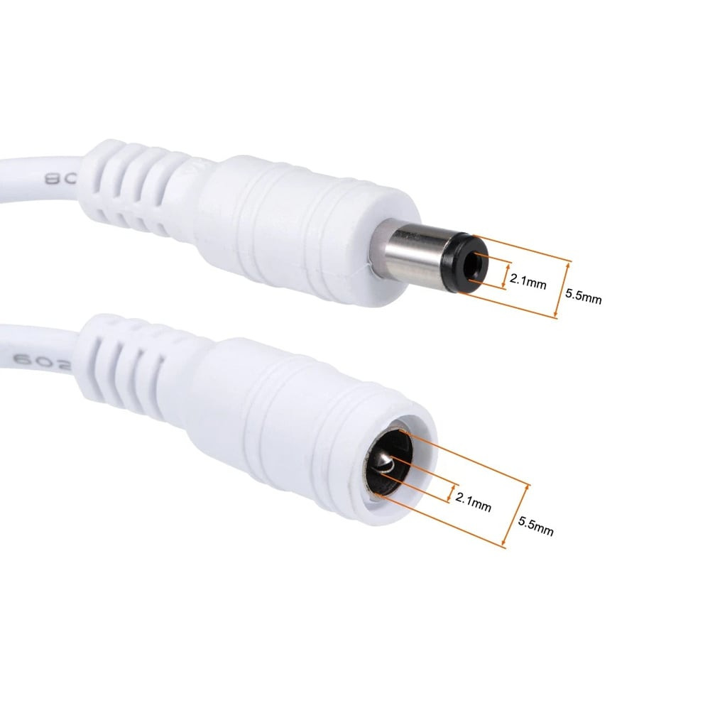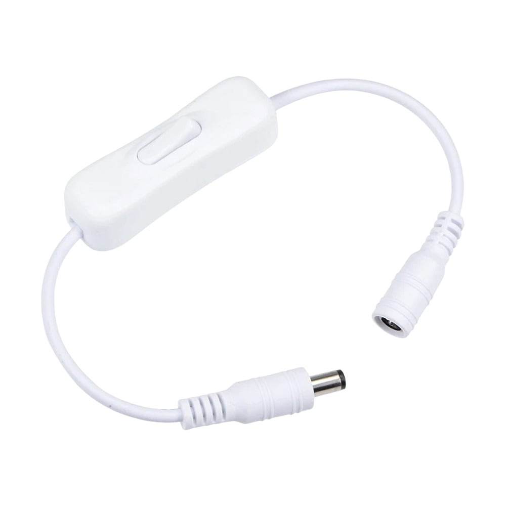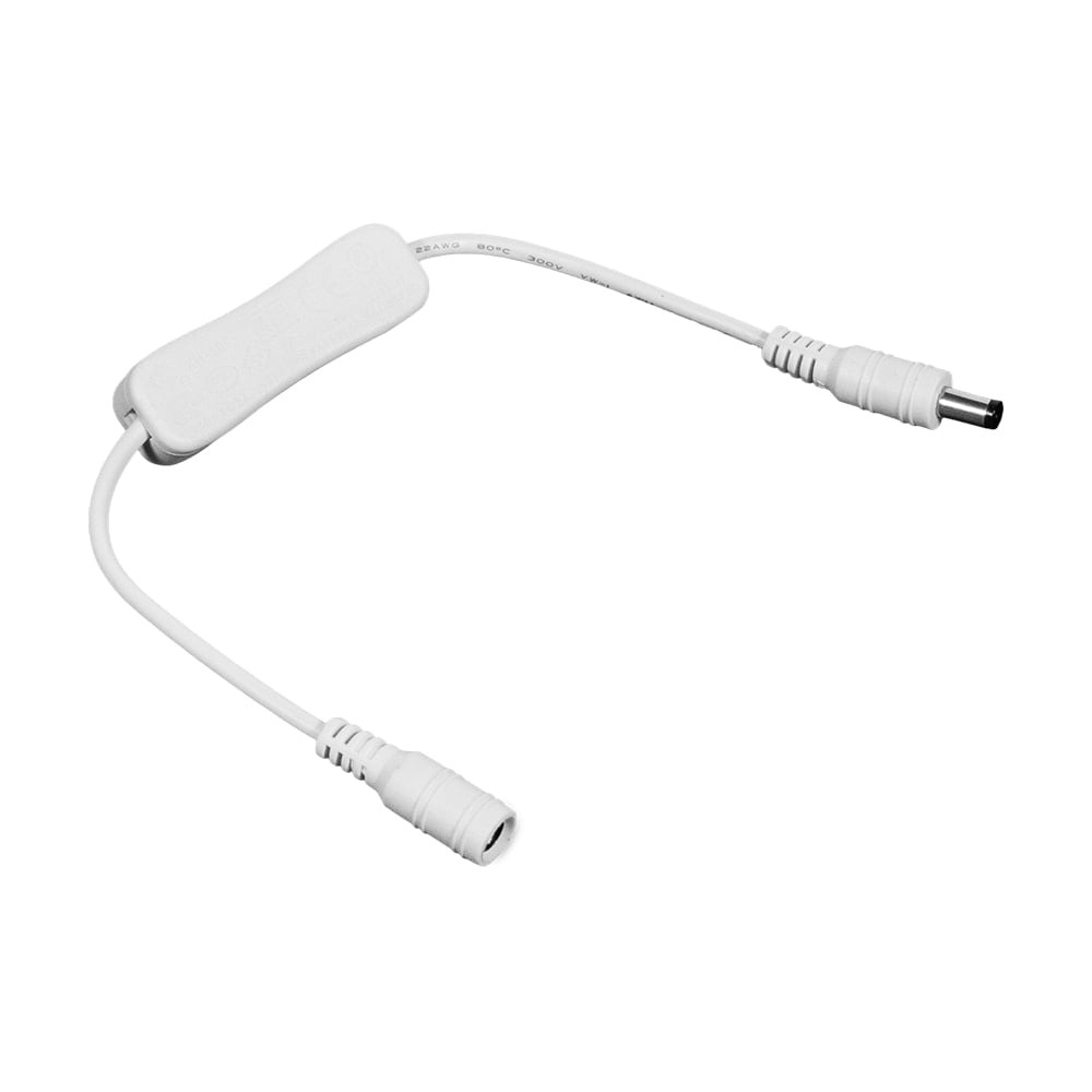Вимикач живлення з кабелем та роз’ємами 5.5х2.1 мм (female «мама» / male «тато»); робоча напруга 12 В, струм до 2 А; підходить для LED-стрічок, світильників, камер тощо; встановлення без пайки – між джерелом живлення і пристроєм; довжина кабелю 30 см; корпус перемикача з пластику; розміри 61 / 19 / 16 мм; вага 50 г